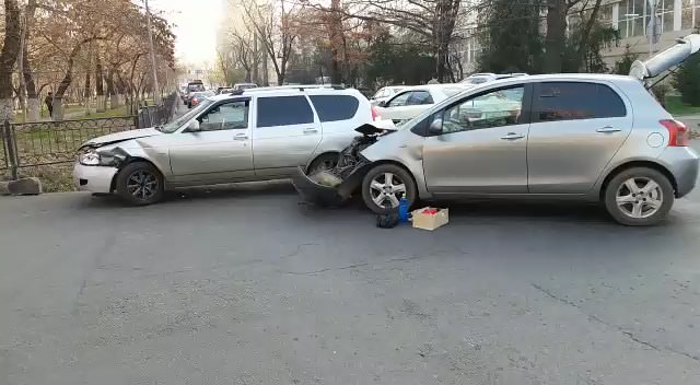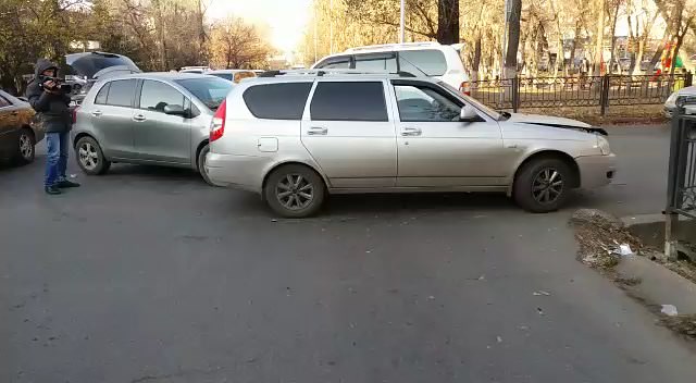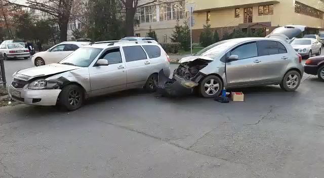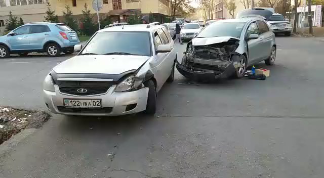 По словам очевидцев, автомашина «Лада» двигалась в восточном направлении по Курмангазы. Проигнорировав или не заметив знак «Уступи дорогу», она выехала на перекресток, где в этот момент по проспекту Гагарина проезжал автомобиль Тойота Yaris, следовавший в южном направлении. В иномарке находились двое детей. Лишь по счастливой случайности в результате столкновения двух машин никто из находившихся в них людей серьезно не пострадал.