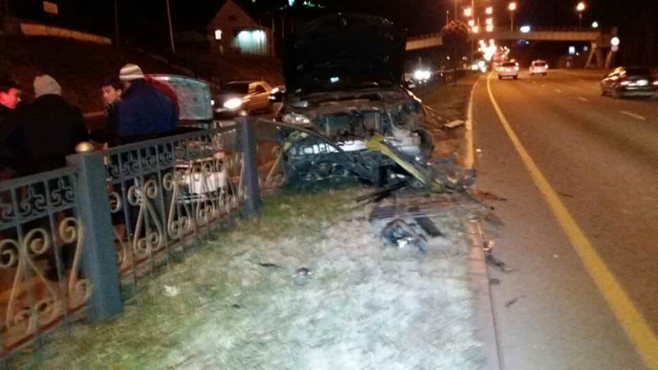 Другой Mercedes, ехавший сзади, хотел уйти от столкновения, но задел автомашину Honda Accord. В результате немецкую иномарку откинуло на забор, и она, прежде чем остановиться, снесла две секции.
