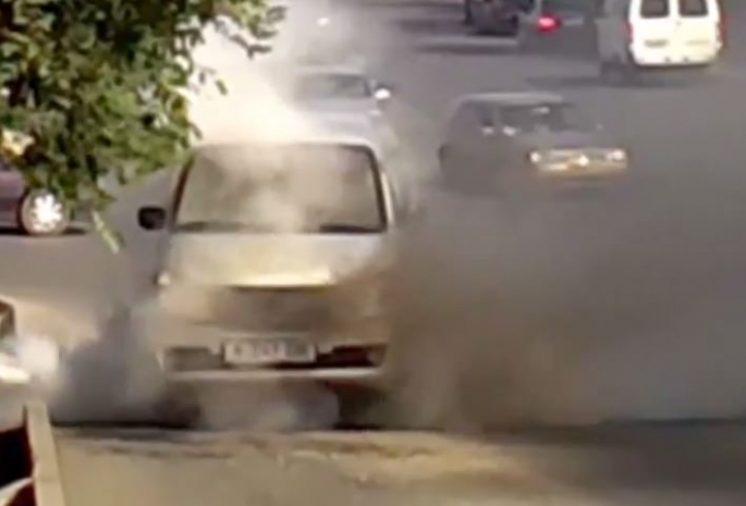 Горящий автомобиль без водителя ехал по улице в Шымкенте [видео]