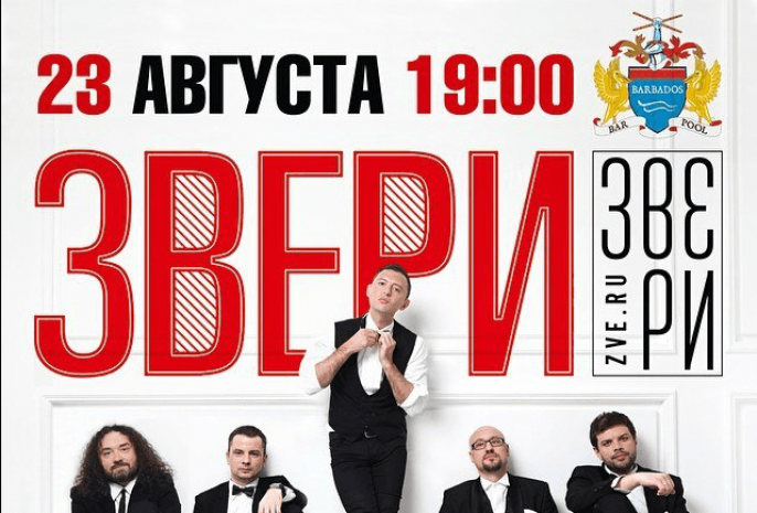 Получившая в начале лета очередную награду “Лучшая рок-группа”, группа «Звери» собирается вновь посетить Алматы с концертом. В следующую субботу, 23 августа, группа выступит в Barbados Pool&Bar (бывший “ТСБ на Воде”).