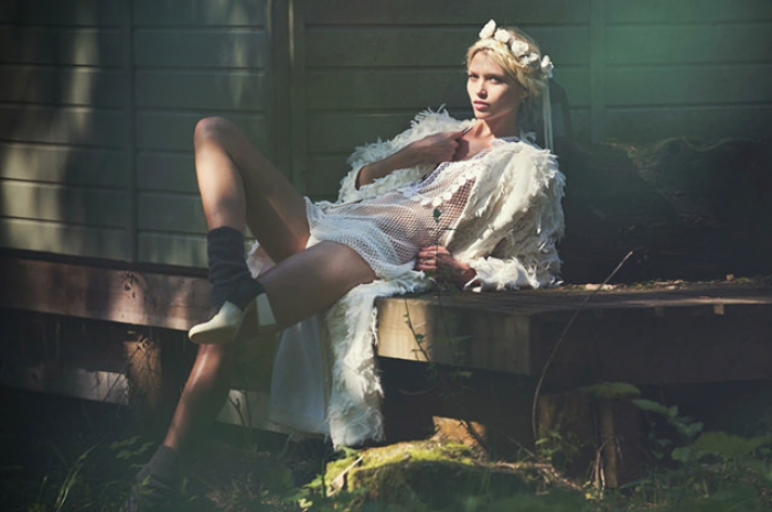 Даже на этих живописных кадрах лето, впрочем, запечатлено уже позднее — словно за пару дней, а то и часов до наступления осени, рассказывает Вuro247.ru. Солнечный свет наполняет залы пустого дома и заливает заросшие высокой травой поляны, но ни теплые фотофильтры, ни белые и почти невесомые наряды, подобранные стилистом Мелани Хайн, не обманут читателя. Да и сама Хана Жирикова похожа скорее не на красавицу, приехавшую в собственный загородный дом, чтобы не упустить последние дни лета, а на сказочное существо, которое жило в этих краях всегда. И фотографу Дэвиду Беллемеру мастерски удается поддерживать эту полуреальную атмосферу в каждом кадре.