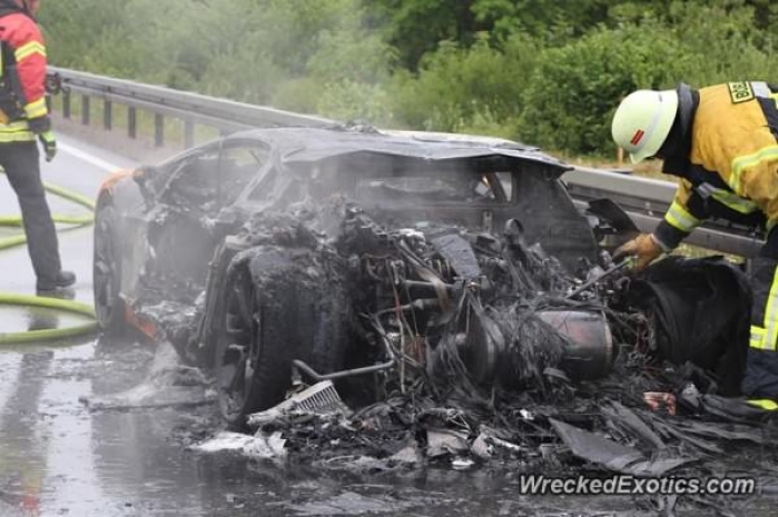 Подробности не сообщаются, но этот оранжевый Lamborghini Aventador недавно получил новый двигатель, что странно, так как автомобиль относительно свежий и выпускается с начала 2011 года. Где-то был брак или что-то напутали ремонтники, но сначала двигатель перегрелся, а затем загорелся. Пожарные приехали достаточно быстро, но не смогли спасти дорогой итальянский суперкар.