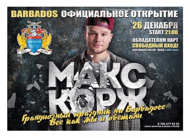 Barbados проводит конкурс и дарит бесплатный билет на официальное открытие бара и концерт. Все подробности можно узнать на официальной странице бара ВКонтакте. Для обладателей клубных карт вход свободный.