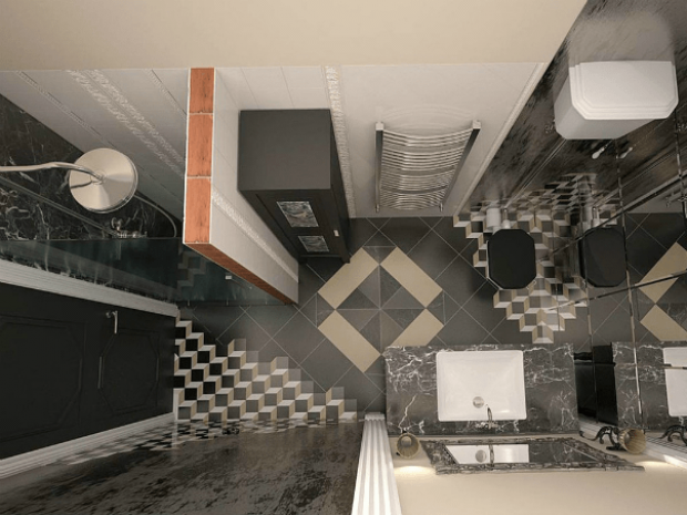 Один из самых неординарных примеров использования плитки в интерьере санузла