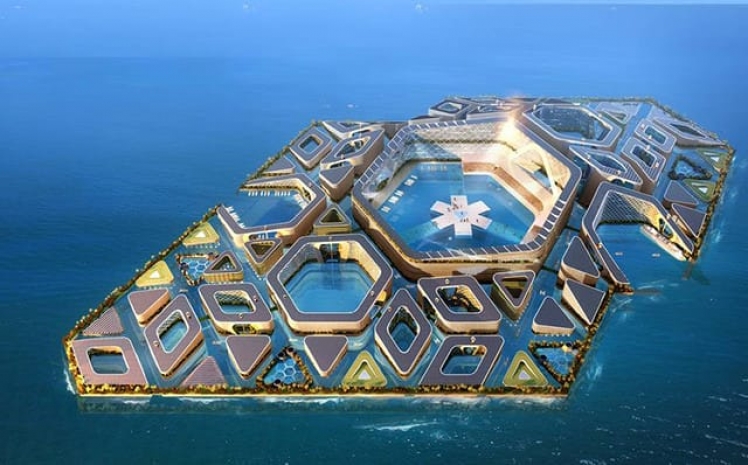 Проект «Плавающего города» — результат успешного сотрудничества между китайской инженерной компанией СССС и архитекторами лондонского бюро AT Design Office. Прежде они вместе работали над созданием портового города недалеко от Коломбо, остров Шри-Ланка. Новая цель дуэта — город на плаву, базой для которого послужит разработанный ранее плавучий мост, который держится на воде без какой-либо опоры.