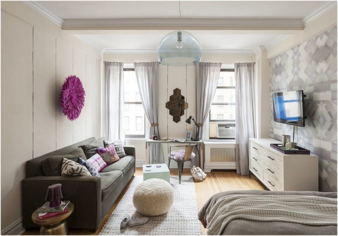 Не загромождайте пространство мебелью. Это может быть непросто, но продумайте в своей однокомнатной квартире место лишь для необходимых предметов мебели. Попробуйте выбрать элементы, отличающиеся многозадачностью.