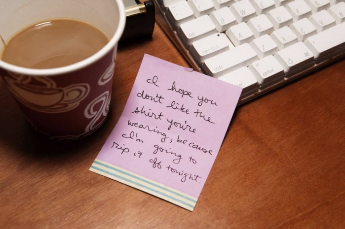 5. Подбросить ему записку. Просто напиши ему пару ласковых слов и тайком подбрось записку в его портфель или карман пиджака. Не обязательно изощряться в красноречии - главное, чтобы это было искренне. «Для кого-то записка в кармане ничего не значит, а мне сразу же становится так тепло на душе. Приятно, что она думает обо мне, даже когда меня нет дома», - Питер, 31 год.