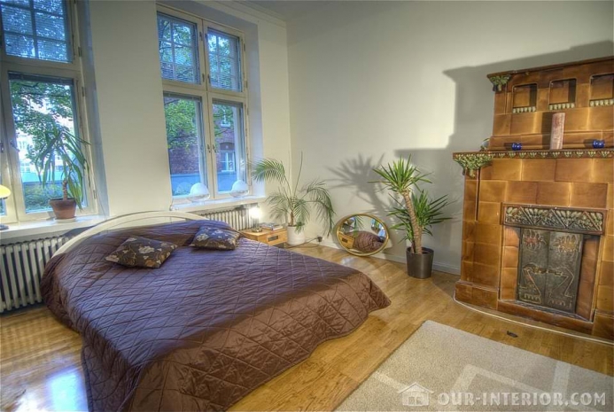 Полы, как правило, из натурального камня или деревянные. Если, возможности выложить пол натуральным камнем нет, можно использовать для этих целей – современный материал – керамогранит. Тогда не забудьте установить в спальне систему теплого пола.
