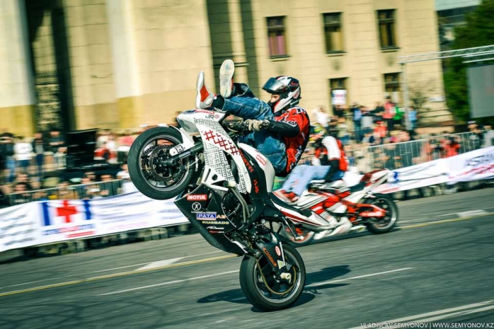 А заинтересовать публику и пригласить алматинцев на соревнования устроители попросили знаменитых райдеров из Риги – Яниса Розитиса и Лауриса Клебахса. В рамках Stuntriding Show Almaty 2014 прошла и дуэльная гонка на Кубок президента Федерации автомотоспорта Казахстана.