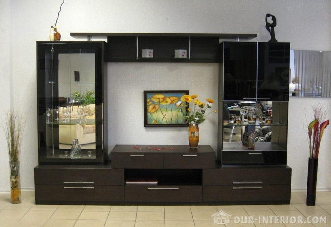 Такой вид стенок можно считать лучшим вариантом для комнат, оформленных в минималистском стиле или в стиле хай-тек. Минимальное количество шкафов как можно лучше подчеркивают всю красоту максимального количества открытого пространства. А что нужно для наших квартир хрущевской планировки? Такие мини-стенки в интерьере небольшой гостиной уже сами по себе – полноценный и стильный декор интерьера. Они всегда в комнате смотрятся по классически роскошно.