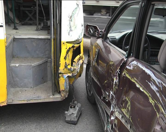 В Турксибском районе автомобиль столкнулся с пассажирским автобусом