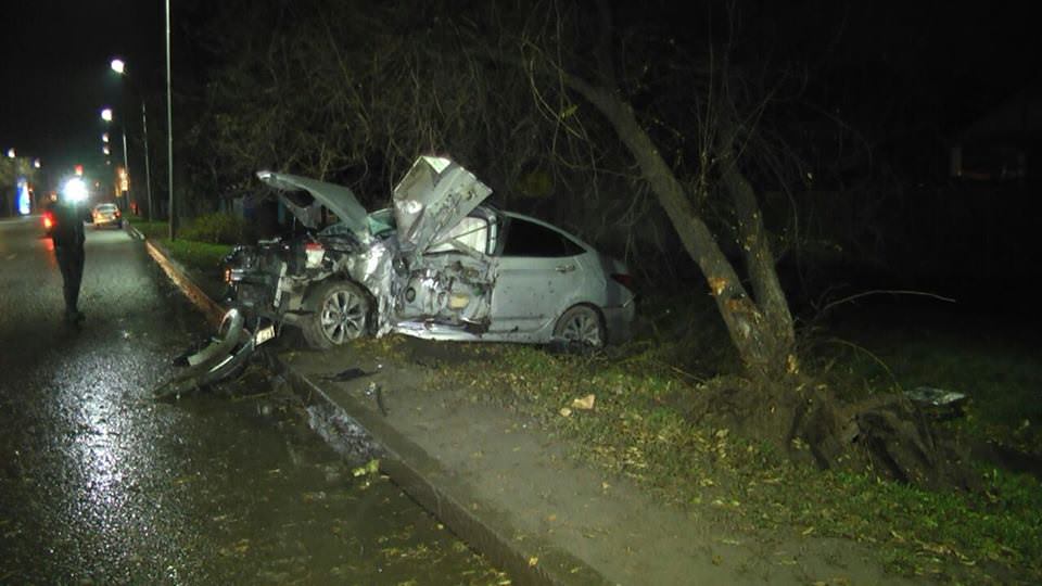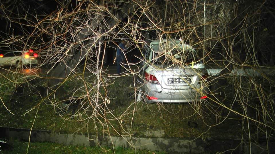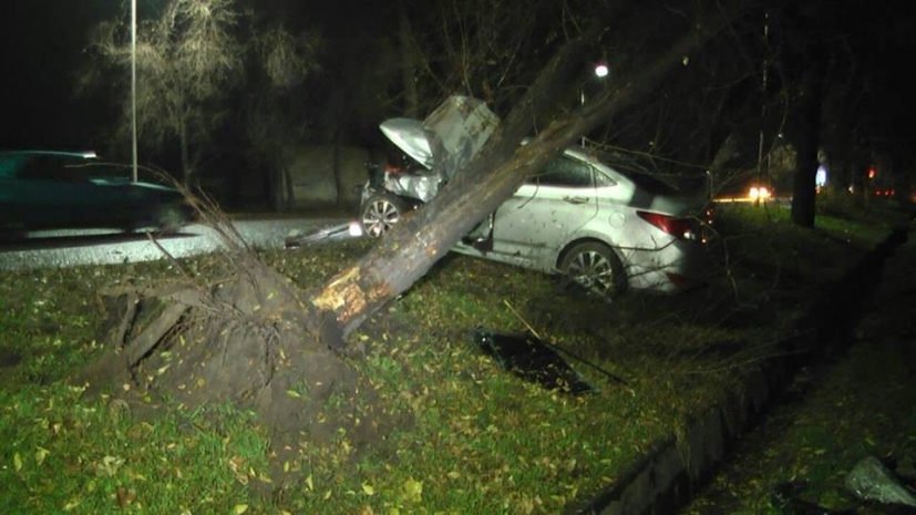 Серебристый Hyundai проехал чуть дальше, врезался в дерево и, вырвав его с корнем, остановился.