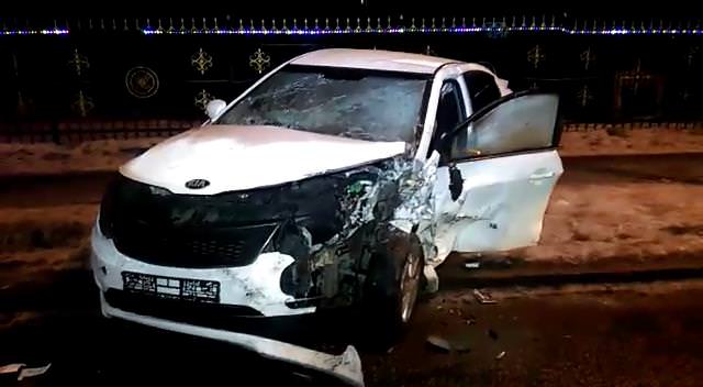 Как сообщают очевидцы, водитель автомобиля Кia двигался в восточном направлении по улице Толе би. При переезде улицы Байтурсынова произошло лобовое столкновение с автомобилем Mercedes, водитель которого пытался вывести машину из заноса, но не справился с управлением.
