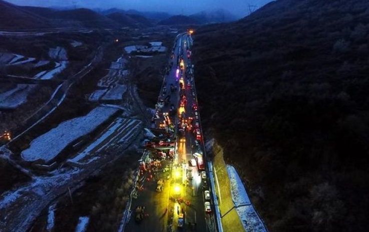 Авария произошла на трассе, связывающей Пекин и Куньмин. Причиной массовой аварии, по предварительным данным, стал мокрый снег.