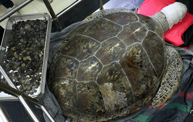 В Таиланде из желудка живой черепахи извлекли пять килограммов монет