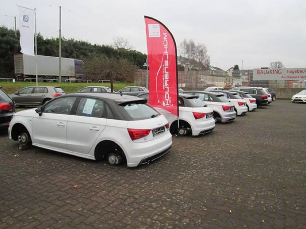В автоцентре Volkswagen Group в Германии за ночь открутили с автомобилей 44 колеса