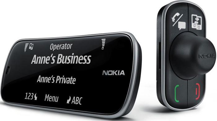 В автомобиль можно установить комплект громкой связи. В этом случае разговор по телефону будет транслироваться через автомобильную акустику и дополнительный динамик. Комплект состоит из компактного устройства с монитором или без, динамика и микрофона. К некоторым моделям прилагается пульт управления. Устройство подключается к штатной акустике и сопрягается со смартфоном. Комплекты, которые поддерживают технологию A2DP, воспроизводят музыку с мобильного телефона. Как только поступает вызов, она затихает. Дисплей отображает данные абонента, который вам звонит. Например, Nokia CK-200 – стационарный комплект – поддерживает функцию голосового набора. Помимо встроенного микрофона имеется внешний. С помощью устройства можно управлять записной книжкой. Продвинутые гаджеты комплектуются переходниками для управления на руле.