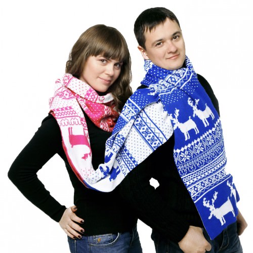 Любите гулять в обнимку? Тогда этот шарф – то, что вам нужно. Его длины с лихвой хватит, чтобы как следует укутаться и не расставаться ни на минуту. Одна половина шарфа – красная, другая – синяя. Приятный на ощупь шарф для влюбленных согреет даже в самый сильный мороз. Модный принт с северными оленями символизирует домашний уют, комфорт и тепло.