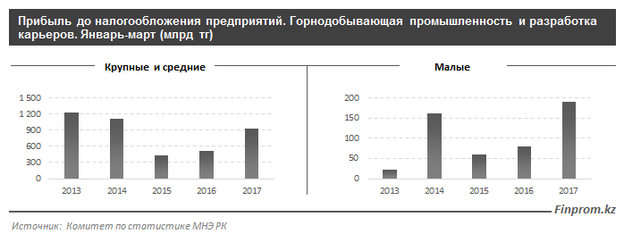 Финансовый профиль сырьевых компаний существенно улучшился в этом году, передает Total.kz со ссылкой на Finprom.kz. За первый квартал года совокупный размер прибыли до налогообложения крупных, средних и малых предприятий горнодобывающей промышленности составил 1,1 триллиона тенге.