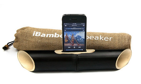 Компания iBamboo предлагает нестандартный вариант – экологичный динамик в цельном корпусе из бамбука. Устройство экономично в изготовлении: при производстве остается минимум отходов. Экогаджет предназначен для iPhone 4, 5 и 6. Естественный резонанс бамбука усиливает звук, который воспроизводит динамик смартфона.