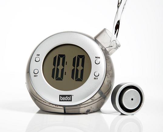 Часы Bedol достойны звания самого экологичного в мире гаджета. Электронные часы по сравнению с другими электроприборами потребляют совсем немного энергии. Тем не менее предприимчивые разработчики решили свести расход к нулю. Оказалось, часы способны работать на простой воде! Заправлять устройство необходимо не чаще одного раза в два месяца. Водяные часы не требуют батареек и подключения к сети. Часы «запоминают» настройки и не сбрасывают их во время замены воды. Гаджет предельно прост: предусмотрены кнопки для настройки даты, времени и установки будильника. Цифры отображаются на LCD-экране. Емкость с водой герметично закрывает колпачок – если часы опрокинутся, жидкость не прольется.
