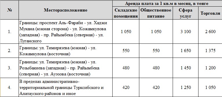 20 из 27 переходов, как выяснилось, «Алматы спецтехпаркинг» сдает в аренду физическим и юридическим лицам. Официальные ставки арендной платы в подземных переходах приведены в таблице. Причем стоимость одного квадратного метра зависит от месторасположения и вида деятельности. Мизерная арендная ставка позволяет арендаторам сдавать помещения в субаренду, плата за которую во много раз превышает установленные официальные расценки. Получается, что таким образом за счет сдачи в аренду коммунального имущества посредники получают немалую копеечку.