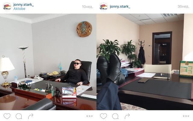 Еще один штрих к портрету Сапарбаева-младшего. В свободное от работы время (судя по всему, его у него предостаточно) Жансултан любит заниматься спортом, играть в сквош, тягать железо, петь в караоке, тусить с молодой супругой на тематических вечеринках, кататься на дорогих авто, но самое любимое занятие, как мы поняли, это собирать «лайки» под фотографиями в социальных сетях.