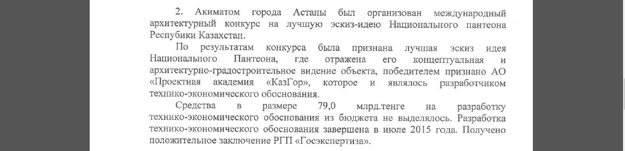Из официального ответа акимата города Астаны
