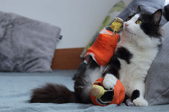 После шестинедельного восстановительного периода животному позволили испытать бионические конечности. Златинов утверждает, что кот постепенно привыкает к ним и сам следит за чистотой протезов.