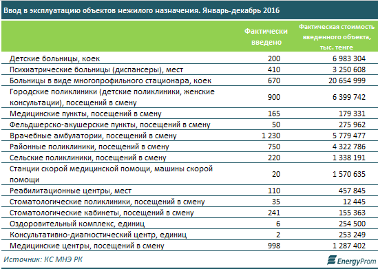 За прошлый год в эксплуатацию были сданы детские больницы на 200 коек, психиатрические диспансеры на 410 коек, многопрофильные стационары на 670 коек.