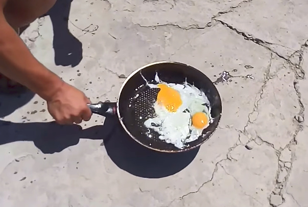 В Шымкенте стоит настолько жаркая погода, что один из жителей города поставил эксперимент и выложил процесс в YouTube. Мужчина поставил сковороду с маслом на раскаленный солнцем бетон и разбил в нее сырые яйца. Не прошло и двух минут, как яйца были пожарены до готовности, пишет otyrar.kz.