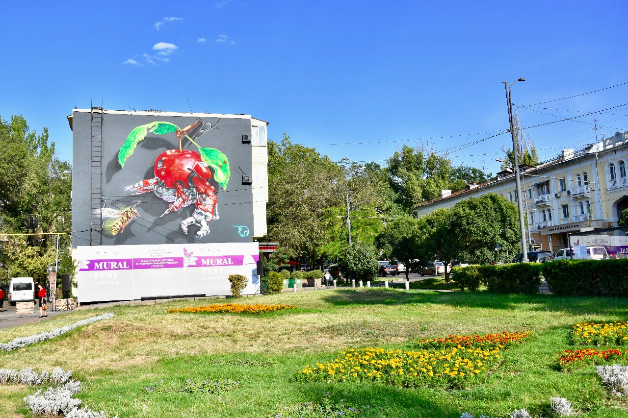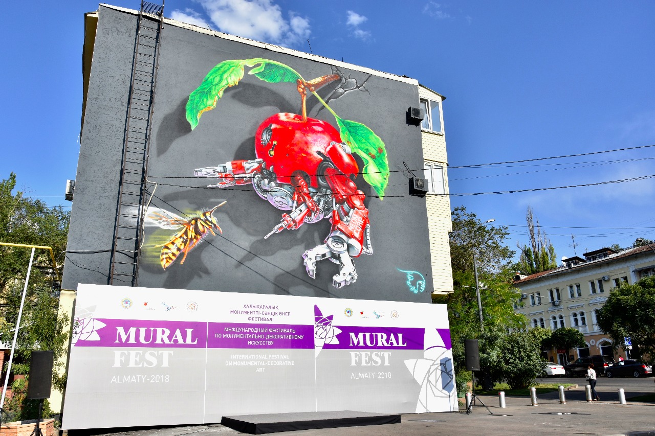 Очередной мурал размещен на стене здания на улице Кабанбай батыра, передает Total.kz.