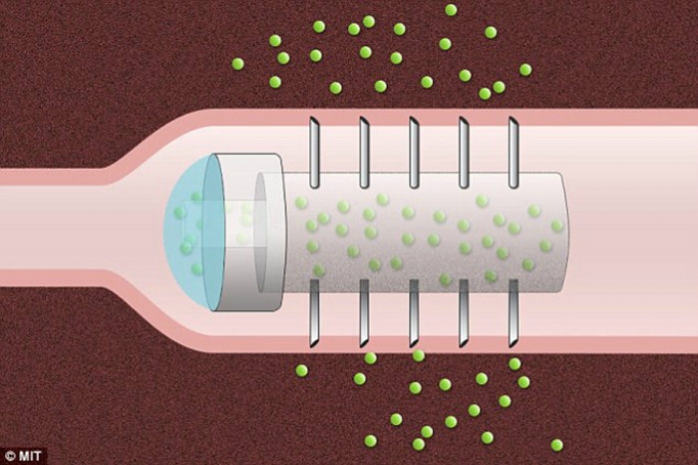 Эффективная доставка лекарственных средств в организм также возможна с помощью микро- и наночастиц, но такой способ связан с большими затратами.Производство этих частиц обходится дорого, а каждое отдельное средство требует разработки новой версии лекарственной формы. Прототип акриловой капсулы (2 см длиной и 1 см в диаметре) состоит из резервуара для лекарственного вещества и покрыт полыми микроиголками из нержавеющей стали длиной около 5 мм. Предыдущие исследования показали, что случайное проглатывание пилюли с короткими иглами не несет никакой опасности для здоровья. Пациенты не почувствуют боли от приема такой пилюли, поскольку в желудочно-кишечном тракте отсутствуют болевые рецепторы. Перемещение капсулы по всему пищеварительному тракту заняло чуть больше недели. Исследователи не обнаружили никаких следов повреждения тканей, что позволяет говорить о потенциальной безопасности такой лекарственной формы. По словам ученых, таким же способом можно вводить вакцины. Исследователи планируют модифицировать пилюлю так, чтобы при сокращении стенок пищеварительного канала происходило медленное выдавливание лекарства из капсулы. Они также разрабатывают иголки из разлагаемых полимеров и сахара, которые могли бы растворяться в организме после высвобождения лекарства.