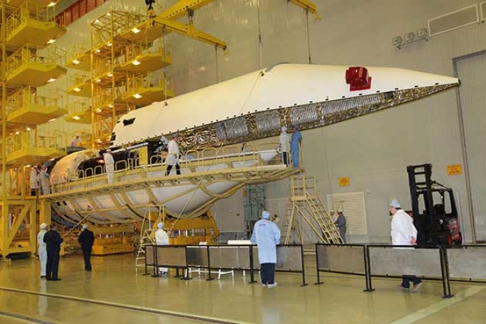 13 октября в монтажно-испытательном корпусе 92-А50 специалисты ГКНПЦ им. М.В. Хруничева и филиала ФГУП ЦЭНКИ – Космического центра «Южный» приступили к общей сборке ракеты космического назначения – стыковке ракеты-носителя и космической головной части. По окончании проверок электрических соединений между ракетой-носителем и головным блоком РКН будет перевезена на техническую заправочную площадку, где пройдет заправка компонентами топлива баков низкого давления разгонного блока «Бриз-М», сообщили в пресс-службе Роскосмоса.
