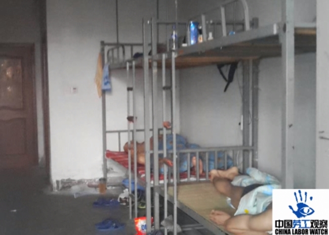 В общежитиях для рабочих царит антисанитария. Поскольку фабрика работает круглые сутки, в одной комнате может жить до восьми человек: пока четверо спят, другие четверо работают.