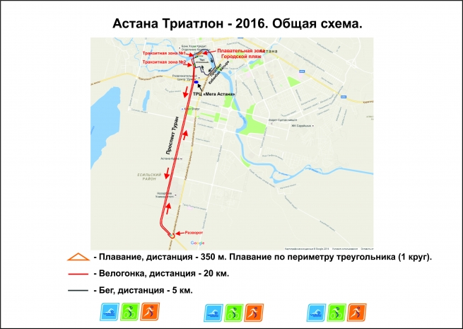 31 июля 2016 года с 10:00 в связи с проведением соревнований по триатлону Super Sprint Triathlon Astana-2016 будет полностью ограничено движение по проспекту Туран от моста «Тулпар» до кольца Аэропорта.
