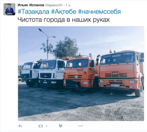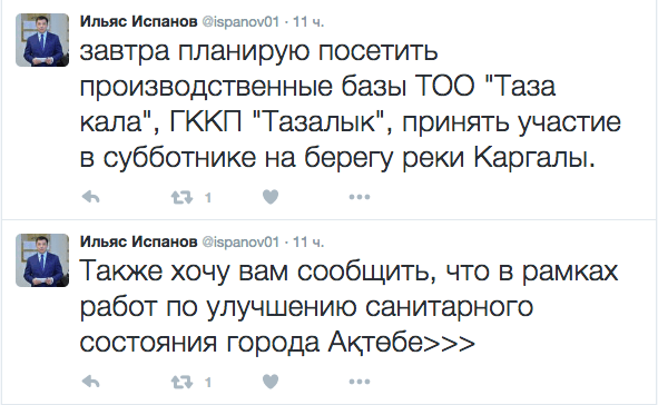 Недавно назначенный Ильяс Оспанов так же, как и премьер-министр страны Карим Масимов, продолжает лично освещать происходящее в Актобе в своем твиттер-аккаунте.
