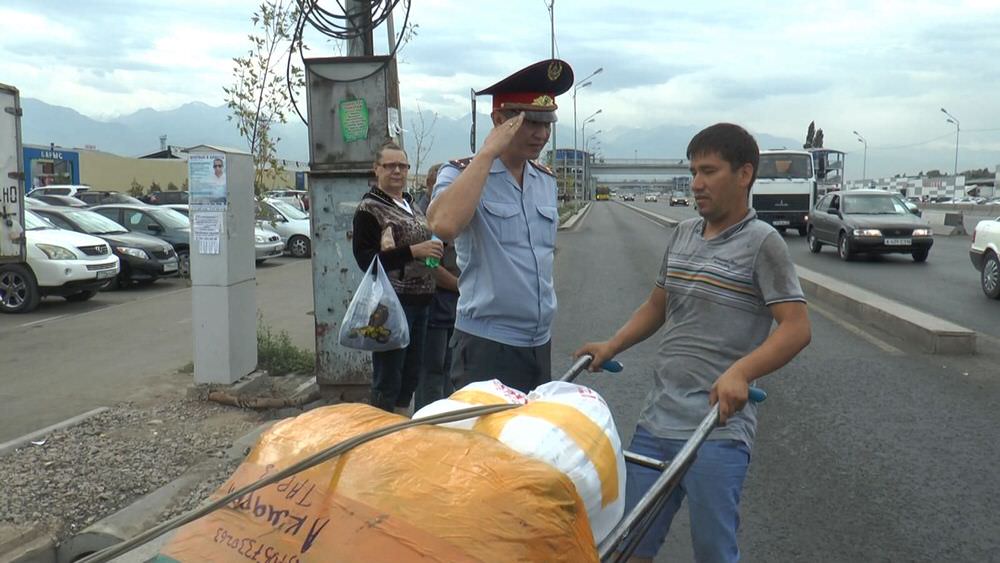 «В частности, у этого рынка, где мы сейчас находимся, имеется подземный пешеходный переход, а в нескольких метрах для безопасности и удобства граждан предусмотрена наземная конструкция. Однако некоторые недобросовестные пешеходы до сих пор переходят дорогу с большим риском для собственной жизни и здоровья, а также создавая реальную угрозу другим участникам дорожного движения. Такие факты должны пресекаться на корню. Сегодня мы выставили несколько экипажей дорожно-патрульной полиции на так называемых уязвимых участках. Пешеходы не боятся бежать через дорогу с интенсивным движением с грузом: баулами, тюками, погрузочными тележками. И все эти факты в совокупности свидетельствуют о низкой культуре и игнорировании закона», – сообщил на рейдовом мероприятии начальник отдела дорожно-патрульной службы ДВД города Алматы Нурлан Нурсаитов.