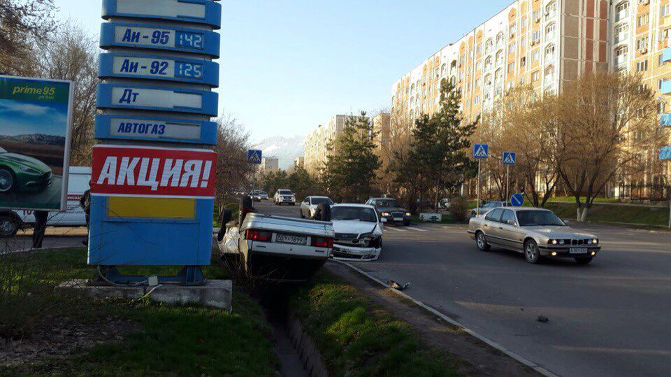 Автомобиль Lada перевернулся в Алматы