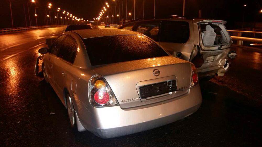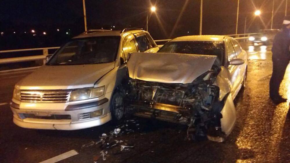 Данный инцидент произошел на мосту Сейфуллина – Рыскулова. Со слов водителя Mitsubishi, он ехал в восточном направлении по проспекту Рыскулова, когда, увидев на мосту сломанную машину, решил перестроиться в правый ряд, в его авто на полном ходу въехал Nissan Altima.