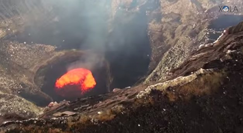 Они добрались до вулкана на вертолете, затем, используя защитное оборудование и трос, спустились вниз по кратеру.