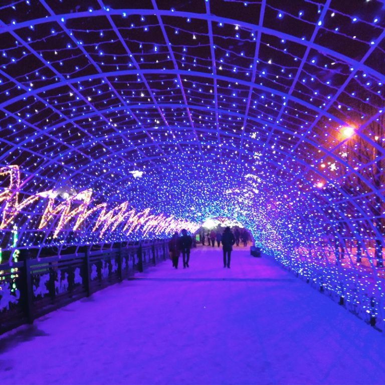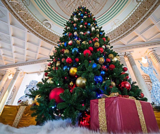 Аналогичная елка, чуть меньшего размера, встречает всех приезжающих в столицу у входа в здание железнодорожного вокзала.