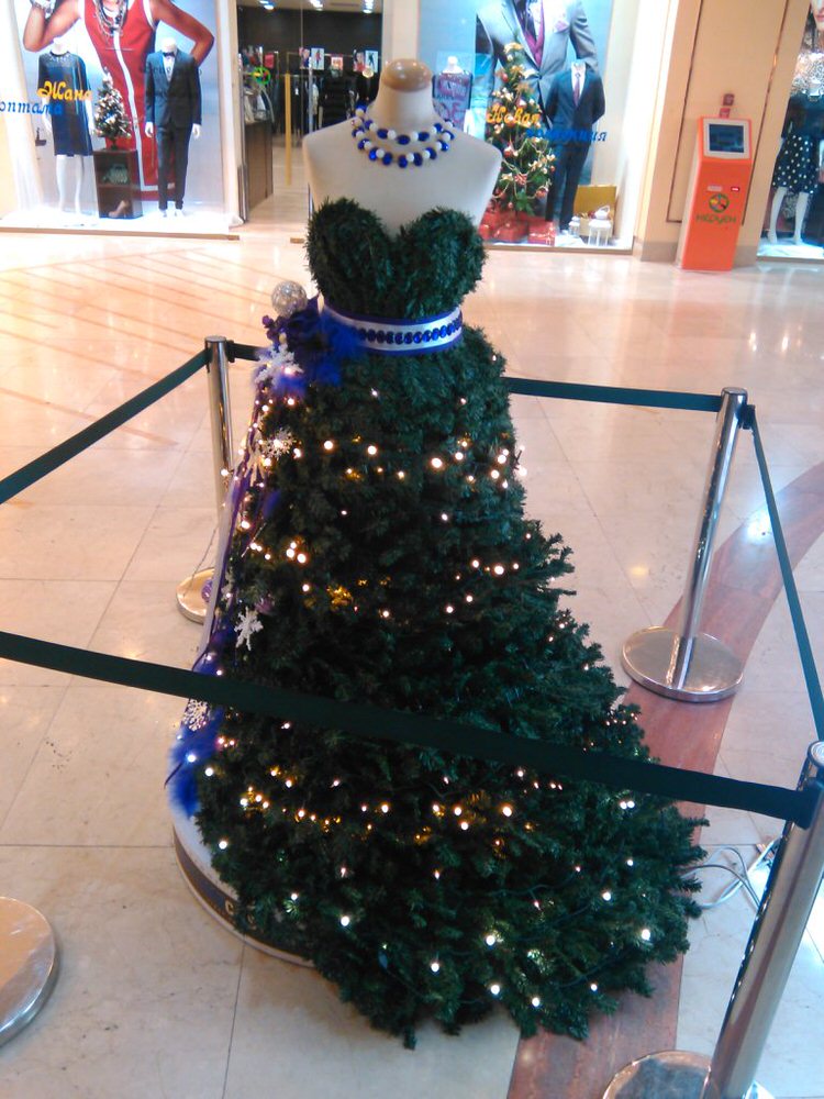 Елки из живых и искусственных цветов, в виде вечерних платьев, небрежных юбок и даже елка с грациозными ножками.