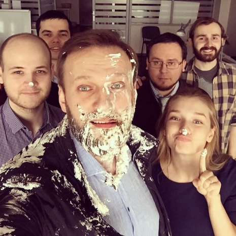 Алексея Навального, основателя Фонда борьбы с коррупцией, двое забросали бисквитами. В своем Instagram политик заявил: «Да-да, такие у этой власти высокие рейтинги и такая мощная поддержка, что единственным возражением на претензии оппозиции Путин с Медведевым видят только метание тортов».