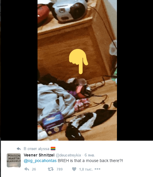 «Там на полу мышь», – недоумевает @deucetreykix.