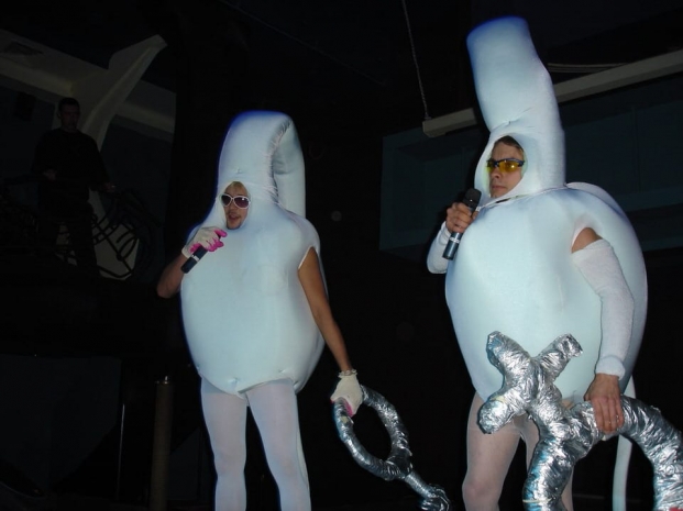 На центральной площади города проходило мероприятие, приуроченное к Всемирному дню борьбы со СПИДом. Человек в костюме сперматозоида раздавал на улице листовки и презервативы.