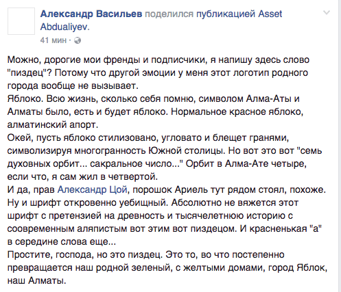 Стоит отметить, что алматинский блогер Александр Цой предложил иной вариант туристического бренда Алматы: