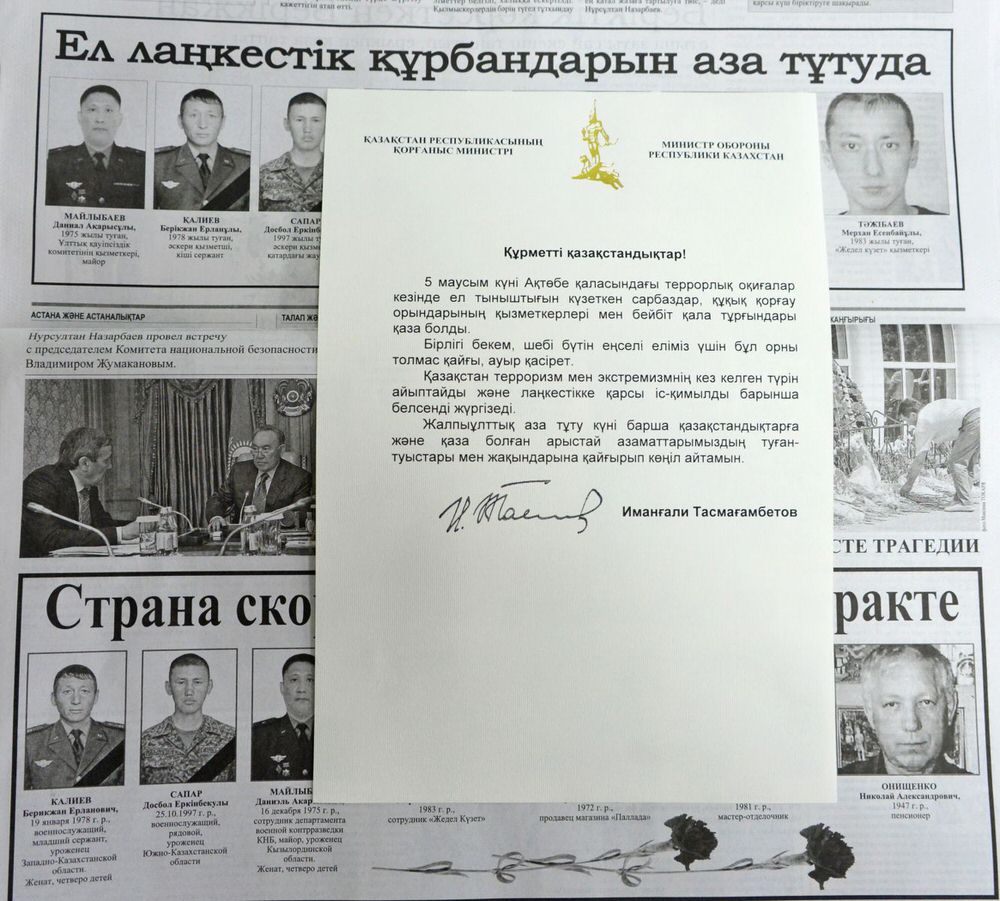 9 июня в Казахстане объявлен национальный траур по погибшим во время террористического акта в Актобе.