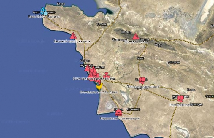Первым регионом в стране стала Мангистауская область, на территории которой отражены специальными значками все загрязнители.