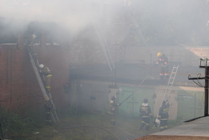 Незамедлительно к месту вызова были направлены пожарные расчеты. К прибытию первого пожарного подразделения пламенем была охвачена большая часть здания. На тушение пожара организована подача огнетушащих средств.